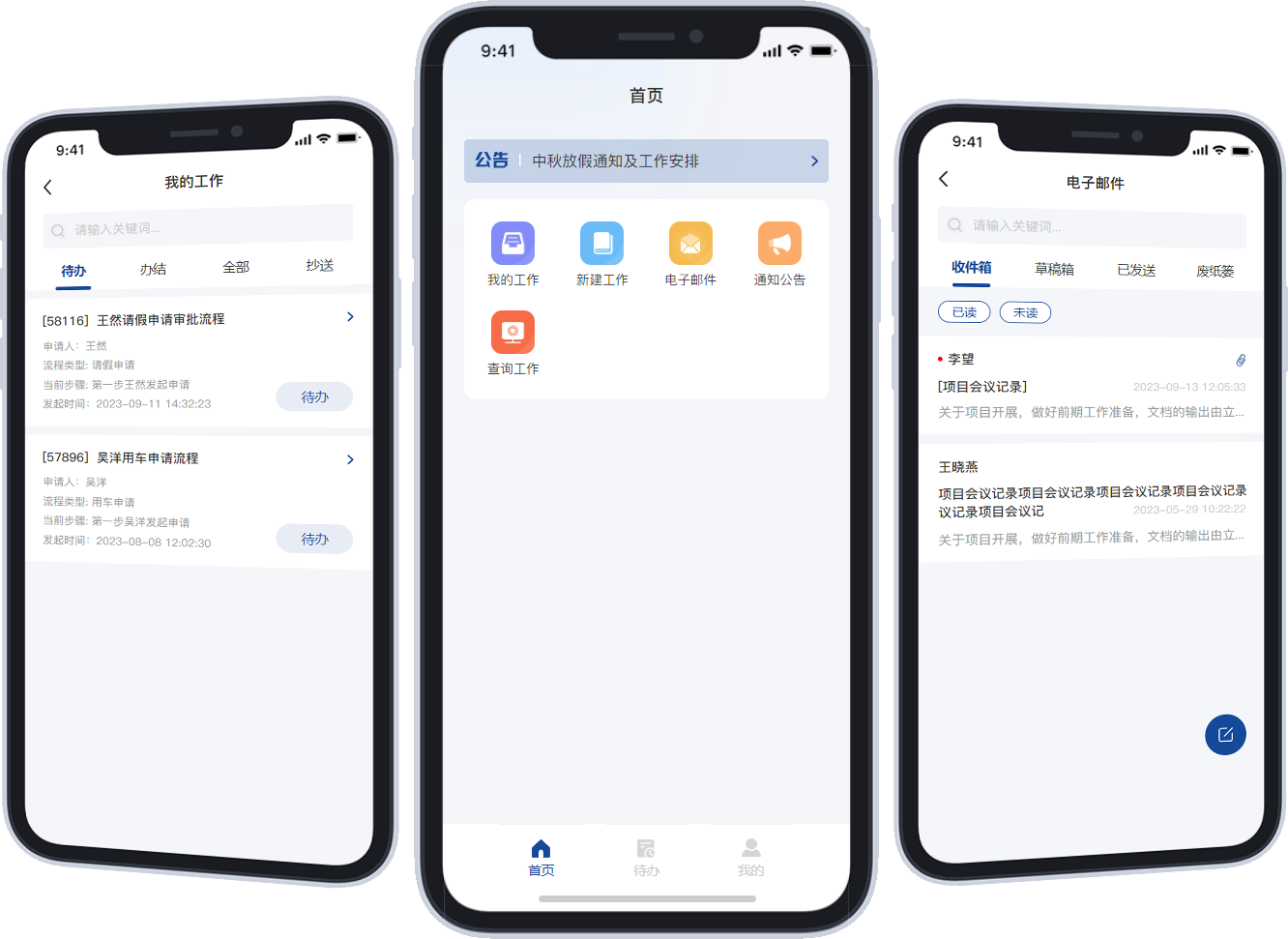 系统建立起手机与电脑的互联互通,提供流程审批、公告通知、电子邮件、新建工作、工作查询等功能模块。让办公人员摆脱时间和场所局限,随时进行审批和决策、高效的处理日常事务,有效提高管理效率。
