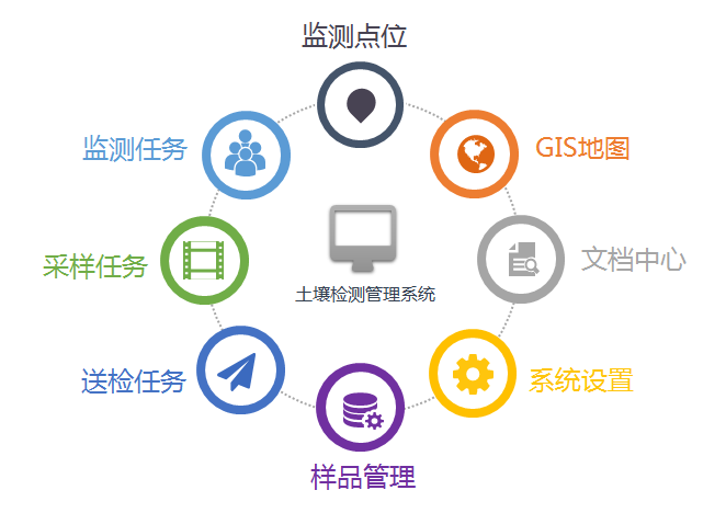 建立一套土壤采集业务管理系统,通过点位数据管理、监测任务的指派、采样任务进度监控、采样信息审核、样品流转、 样品制备、数据分析评价、质控管理等功能辅助,形成从定点、采集到样品分析、数据入库等协同统一的、完善的土壤信息采集机制。